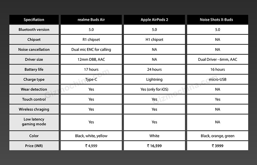 The realme Buds Air comes with wear detection, so it will know when you are wearing it in your ears. The TWS earbuds will feature Bluetooth 5.0 and will come with touch controls, low latency gaming mode, as well as wireless charging. Our source also revealed that the case will come with USB-Type C port and not microUSB.