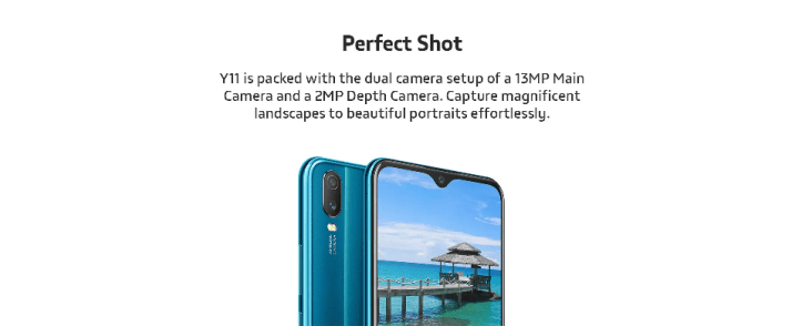 The new Vivo Y11 features a 6.35-inch HD+ (1544×720 pixels) LCD display with a waterdrop-style notch. On the inside there is an octa-core Qualcomm Snapdragon 439 SoC with 3GB of RAM and 32GB of internal storage. At the back, there is a dual-camera setup including a 13-megapixel primary sensor with an f/2.2 lens and a 2-megapixel secondary sensor with an f/2.4 lens. There is also an 8-megapixel selfie camera at the front with an f/1.8 lens.