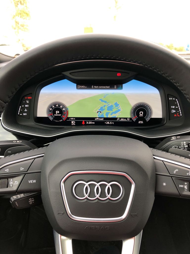 The interior is also very distinctive, with its three different digital display screens. The instrument cluster is, of course, dominated by Audi’s Virtual Cockpit – which is a delight to use – but the rest of the infotainment system and controls are also accessed via touchscreens.