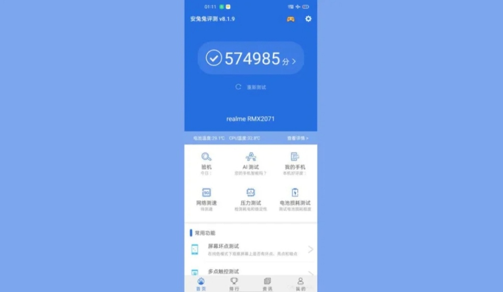- Realme RMX2071 is said to score 574,985 points on AnTuTu.