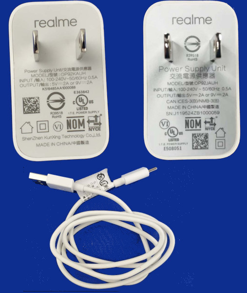 The phone also comes with an 18W charger and USB Type-C cable. This also reveals a 5000mAh battery. It measures 164.4 x 75.x 9.0mm and weighs 195g. It will likely feature HD+ screen, runs Android 10 with realme UI. The phone has dual SIM support, Wi-Fi b/g/n (2.4GHz) and Bluetooth 5.0. No details about the SoC, RAM or storage yet.