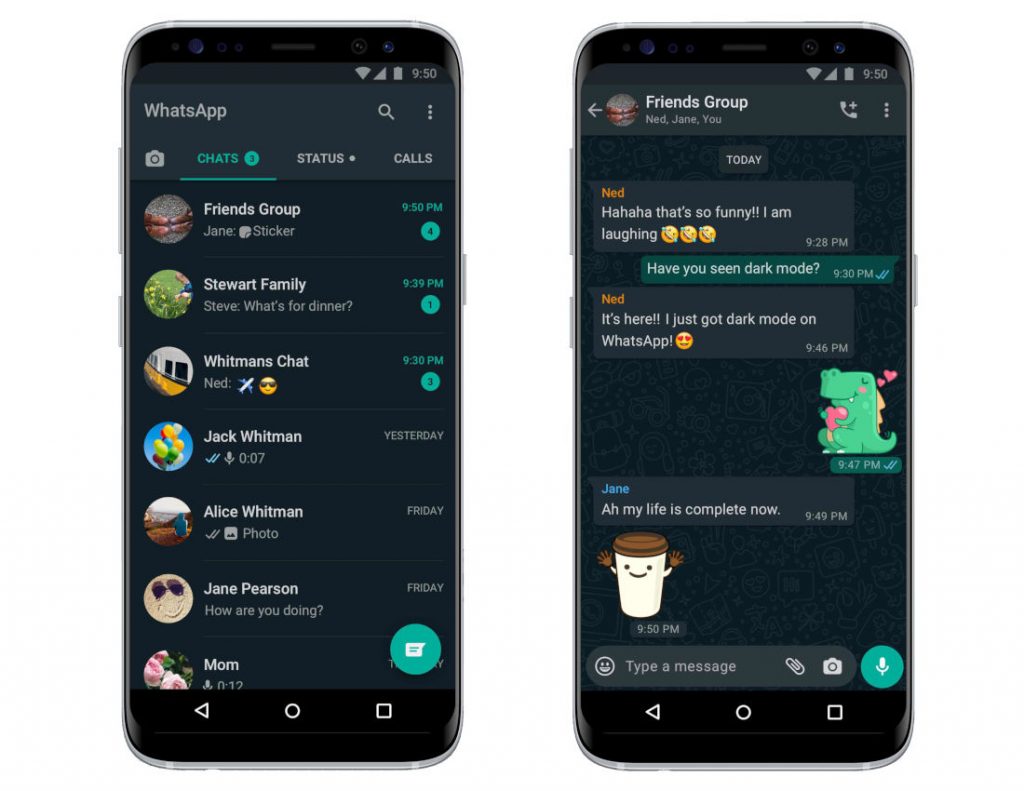 Users on Android 10 and iOS 13 can use dark mode by enabling it in system settings. Users on Android 9 and below can go into WhatsApp Settings > Chats > Theme > select ‘Dark’.