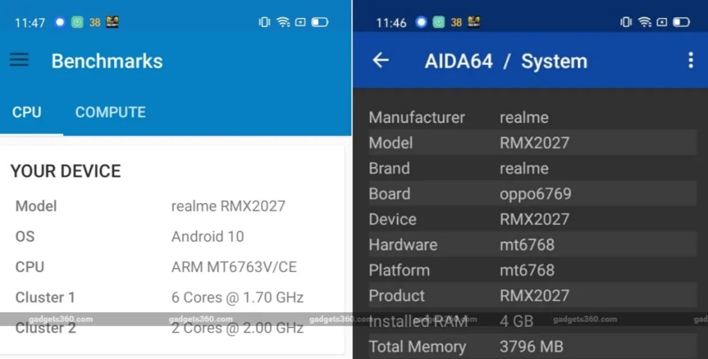 The alleged Redmi Note 9 Geekbench listing mentions the phone under the “Xiaomi Merlin” codename. The motherboard field on the benchmarking platform’s database mentions MT6769V/CZ, which many reports claim is the MediaTek Helio G70. The clock speed mentioned on the Geekbench database is 1.80GHz, but the Helio G70 listing on the official MediaTek website mentions the base clock speed at 1.70GHz, while the peak frequency is 2GHz. Interestingly, we also ran Geekbench on the Realme C3, which is powered by the same Helio G70 SoC, but the results mentioned the CPU build as MT6763. A similar disparity was spotted when system information was accessed via the AIDA64 app.