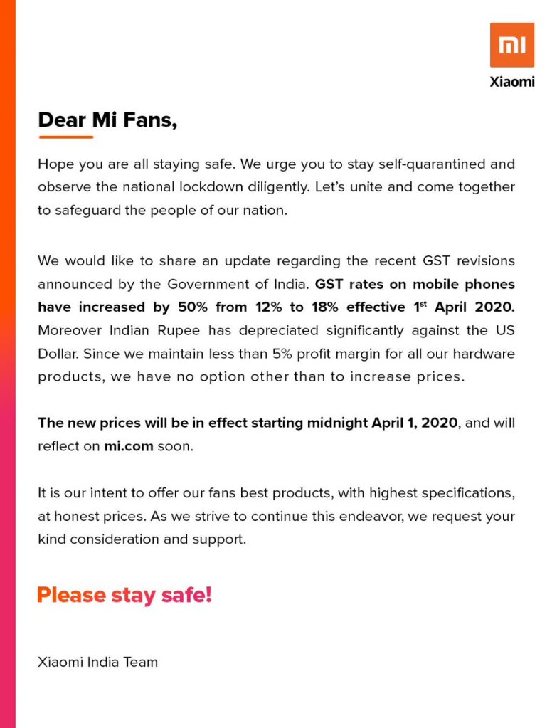 GoI had recently declared increase in GST by 6% on smartphones and the same has come into effect as of April 1